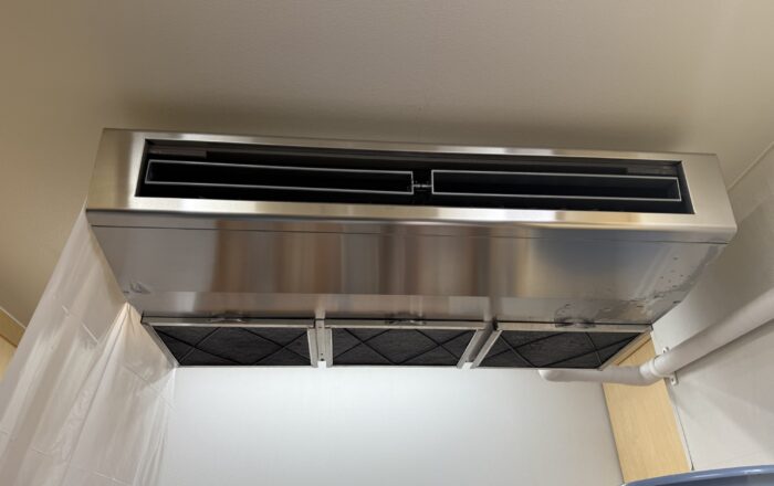 お世話になります!SHIINA DENKI椎名です。民間の保育園施設より、エアコンからの水漏れが止まらないというご依頼のもと、訪問させていただきました。点検の結果、逆止弁にスライム(カビ、バクテリアの固まり)が詰まってしまい、エアコンの結露水が逆流し水漏れを起こしていました。エアコンの洗浄と併せて、逆止弁の交換、排水ドレン配管の交換